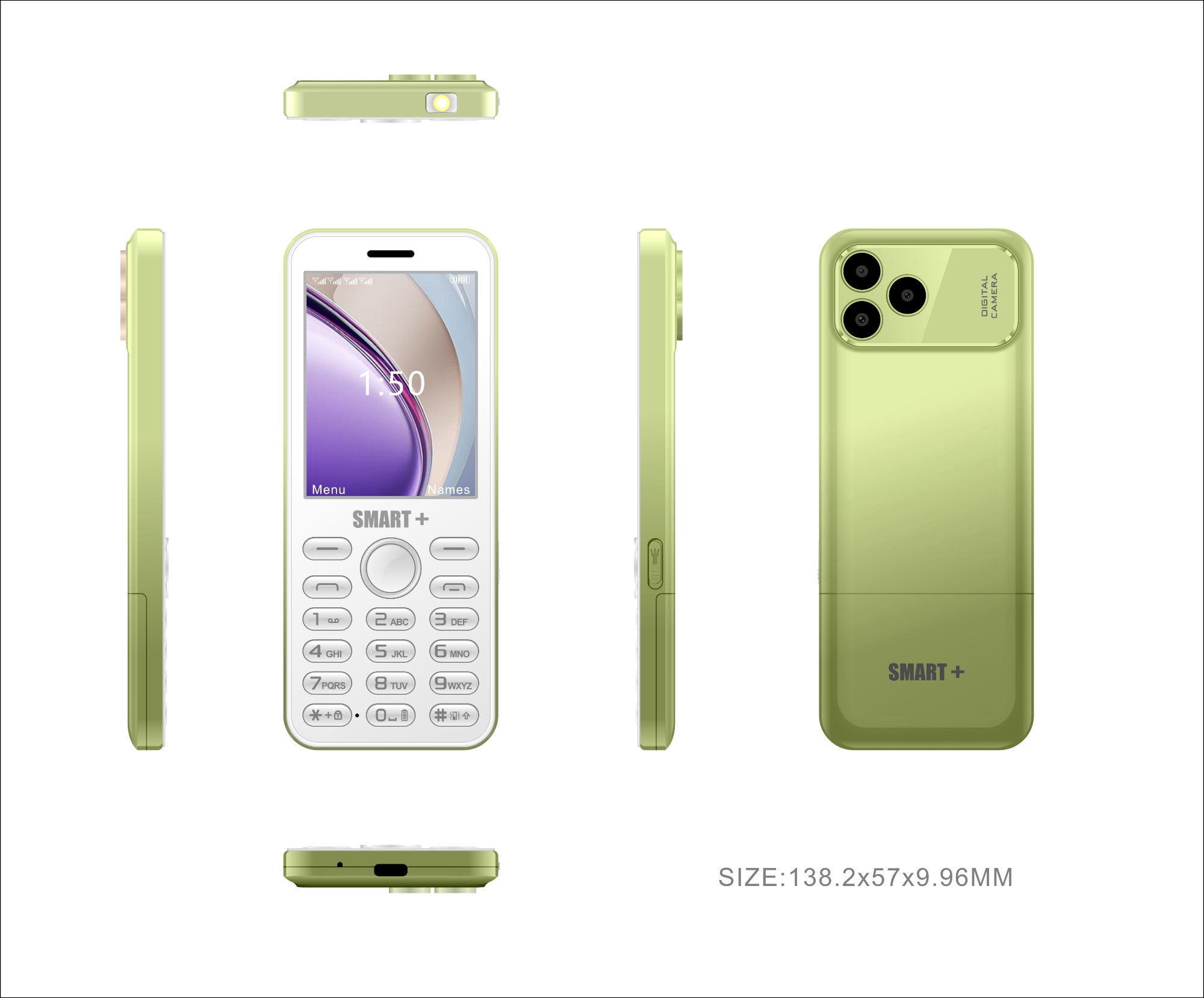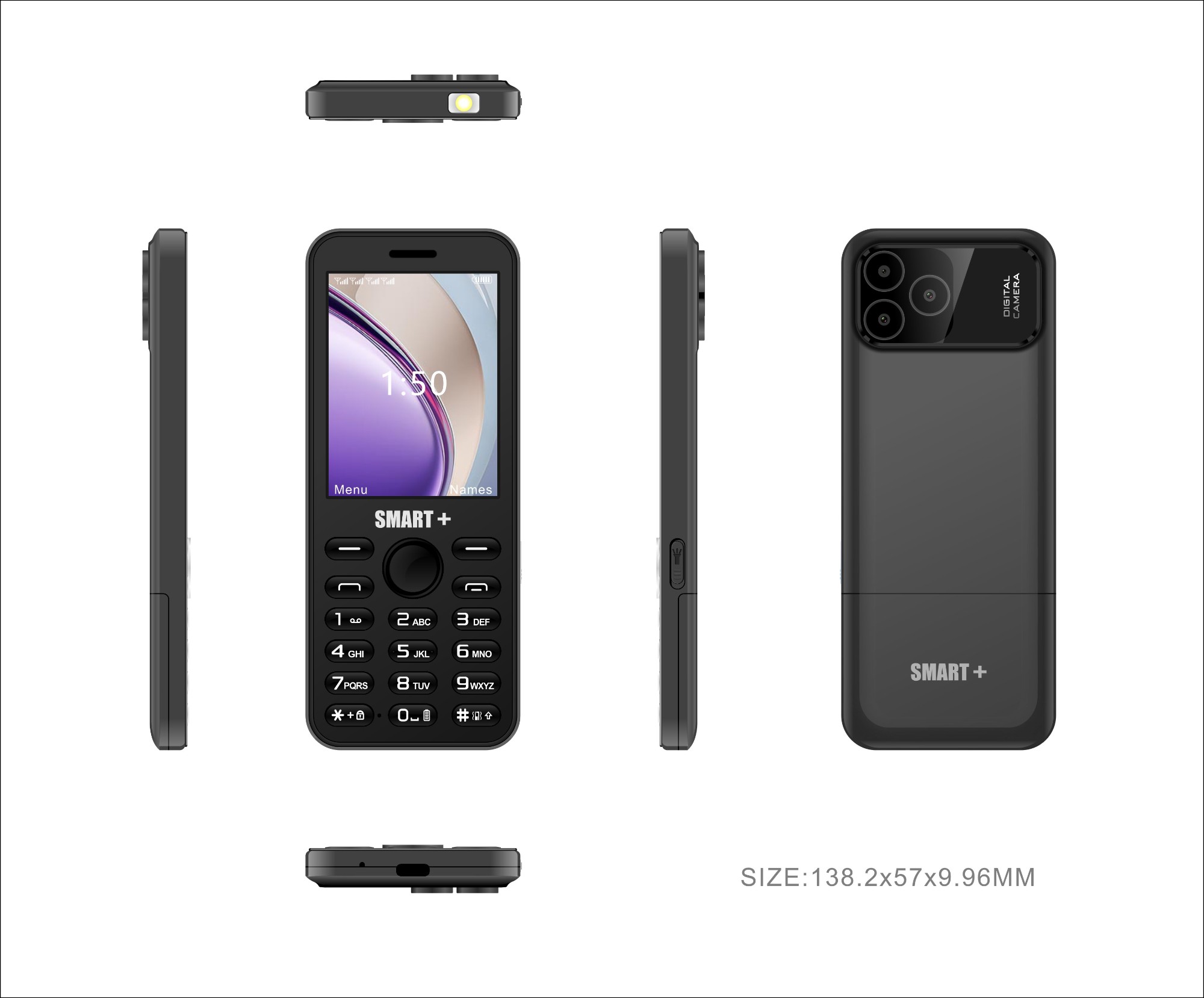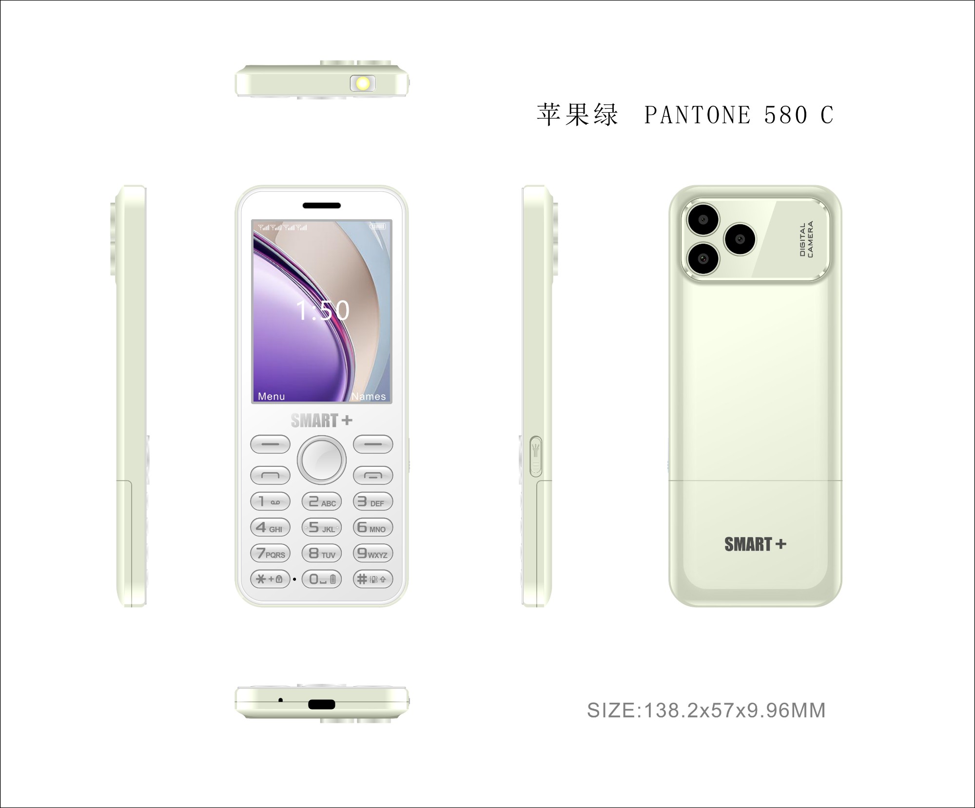 型号:RAINBOW 10+ LCD:2.8” SIM:4 卡 键盘:P+R 喷油 扬声器:1511 SPEAKER BOX 电池:聚合物 2000MAH 尺寸:122.6*53.4*15.5MM